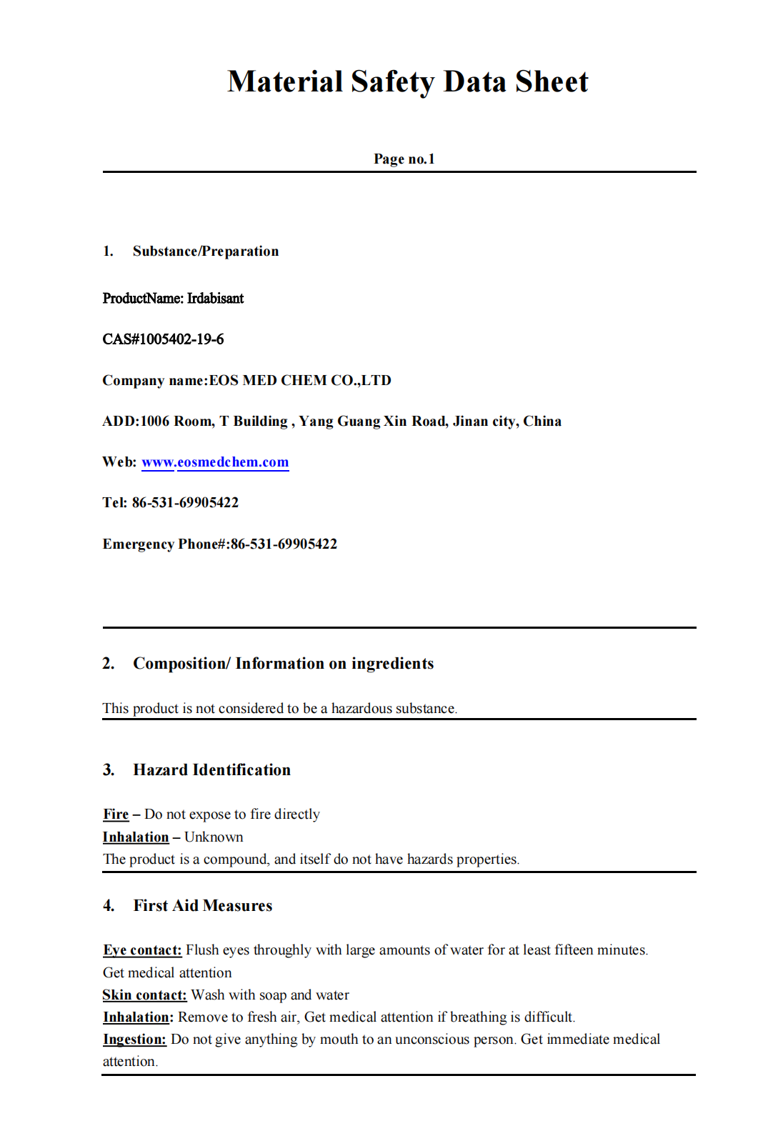 Irdabisant, CAS 1005402-19-6, Stock 259g, Assay 99.7%, White powder, Water 0.19%, Single Impurity 0.3%.