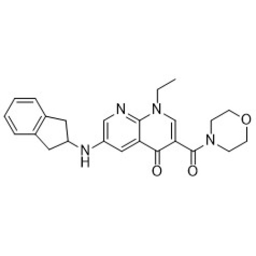 Synonym: Soclenicant; Soclenicantum;IUPAC/Chemical Name: 6-((2,3-dihydro-1H-inden-2-yl)amino)-1-ethyl-3-(morpholine-4-carbonyl)-1,8-naphthyridin-4(1H)-one