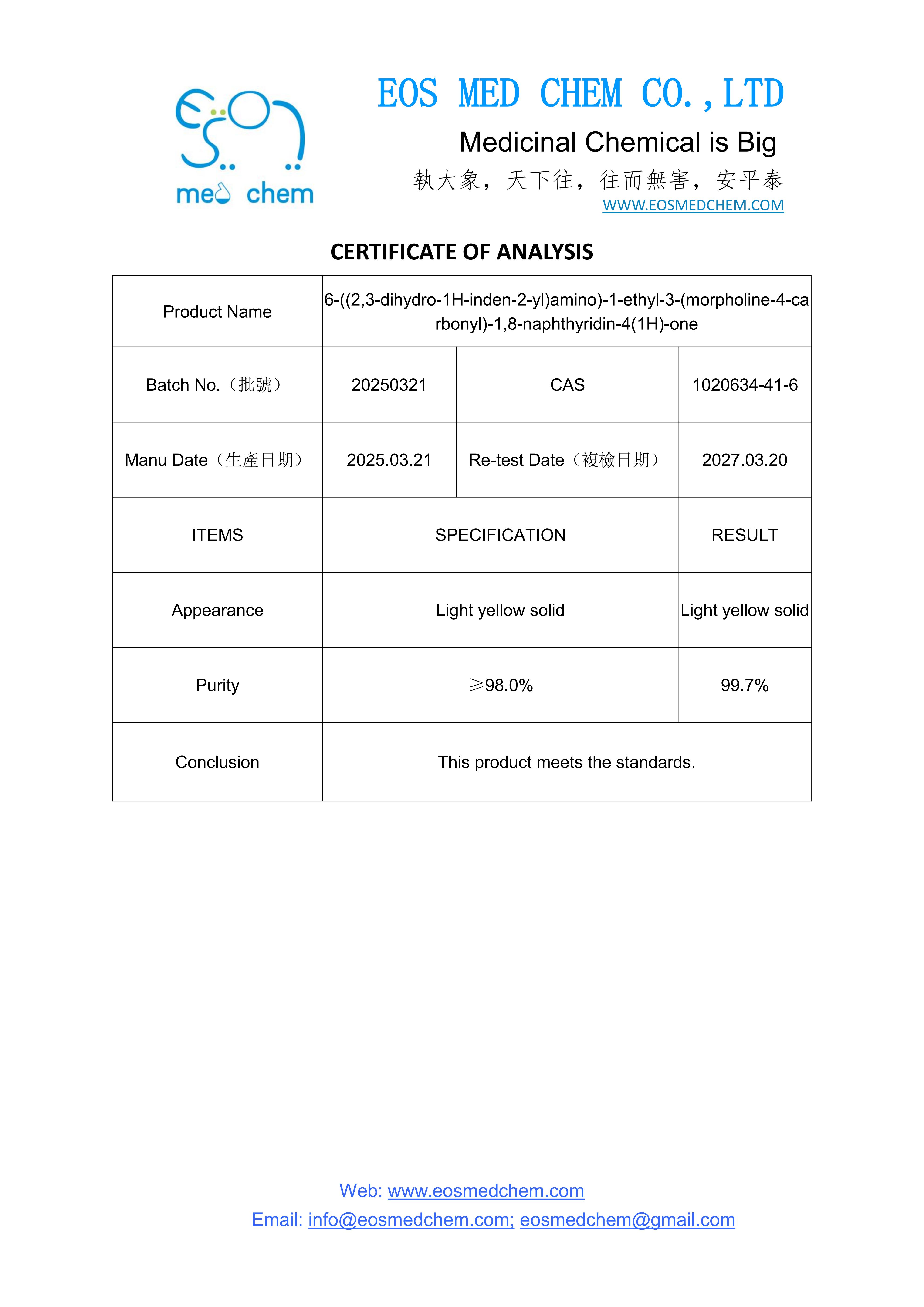 1020634-41-6, Soclenicant, Stock 170g, Assay 99.7%, Light yellow solid.