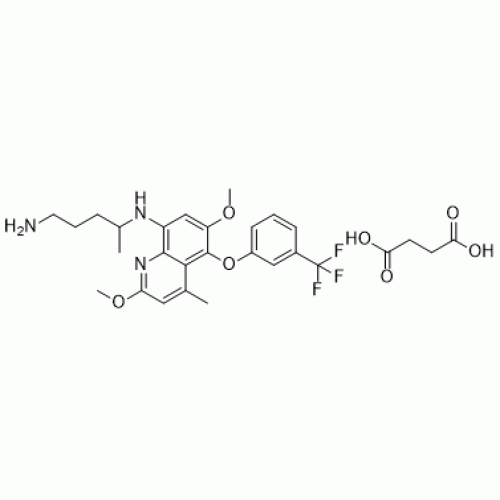 IUPAC/Chemical Name: N4-(2,6-dimethoxy-4-methyl-5-(3-(trifluoromethyl)phenoxy)quinolin-8-yl)pentane-1,4-diamine succinate