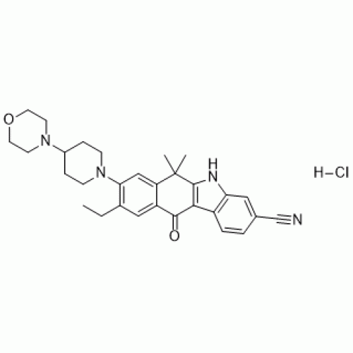 SMILES Code: N#CC1=CC2=C(C=C1)C3=C(C(C)(C)C4=CC(N5CCC(N6CCOCC6)CC5)=C(CC)C=C4C3=O)N2.[H]Cl