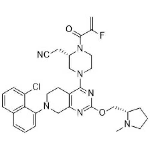 IUPAC/Chemical Name: 2-((S)-4-(7-(8-chloronaphthalen-1-yl)-2-(((S)-1-methylpyrrolidin-2-yl)methoxy)-5,6,7,8-tetrahydropyrido[3,4-d]pyrimidin-4-yl)-1-(2-fluoroacryloyl)piperazin-2-yl)acetonitrile