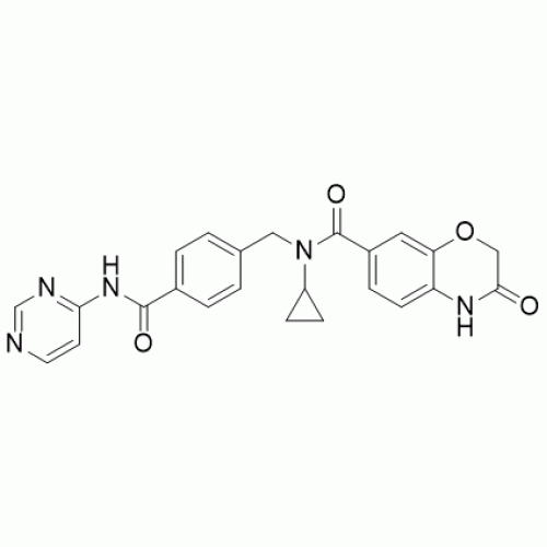 IUPAC/Chemical Name: N-Cyclopropyl-3-oxo-N-(4-(pyrimidin-4-ylcarbamoyl)benzyl)-3,4-dihydro-2H-benzo[b][1,4]oxazine-7-carboxamide