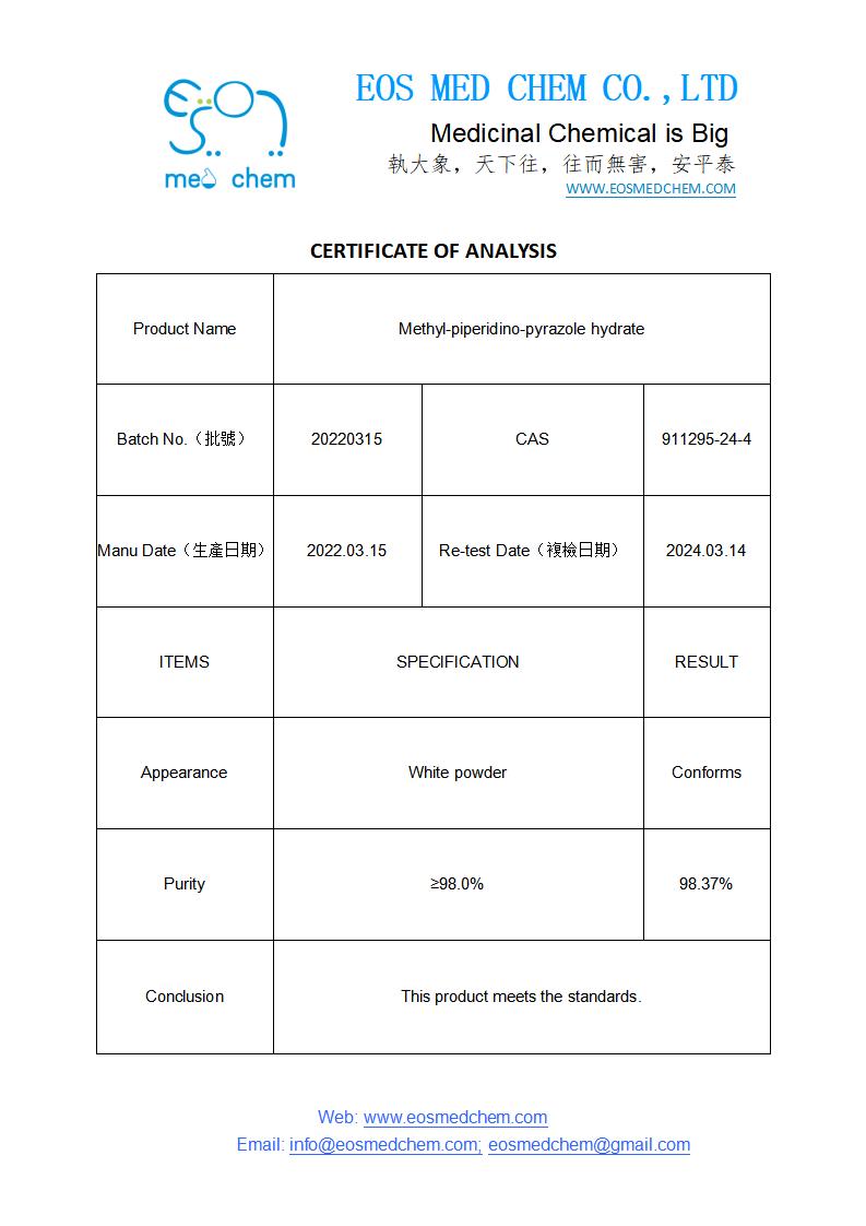 IUPAC/Chemical Name: Methyl-piperidino-pyrazole hydrate