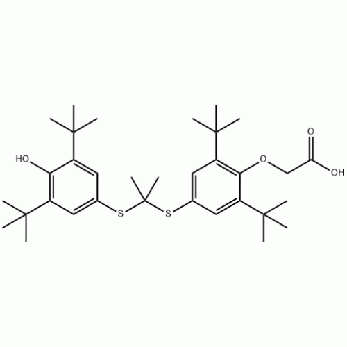 SMILES Code: CC(C)(C)c1cc(cc(c1O)C(C)(C)C)SC(C)(C)Sc2cc(c(c(c2)C(C)(C)C)OCC(=O)O)C(C)(C)C