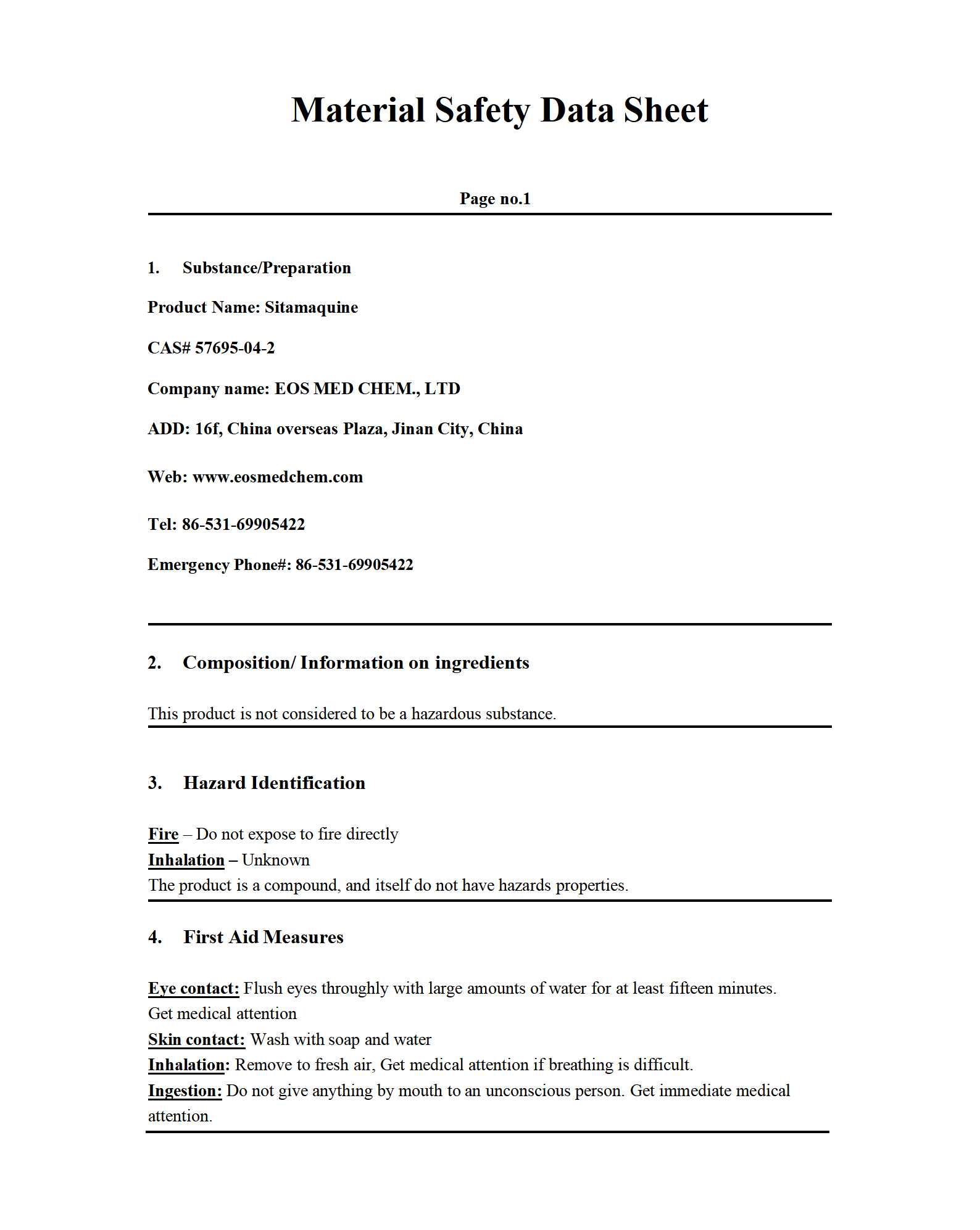 Sitamaquine, CAS 57695-04-2, Stock 234g, Assay 99.2%, White powder, EOS Med Chem is big manufacturer of Sitamaquine.