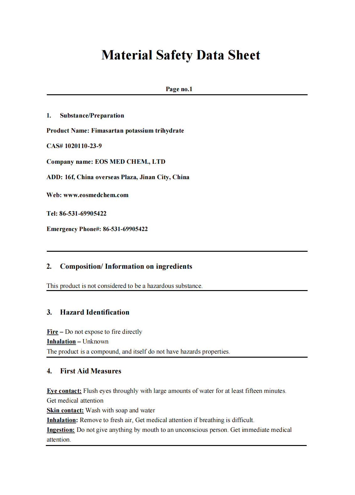 CAS 1020110-23-9: Fimasartan potassium trihydrate